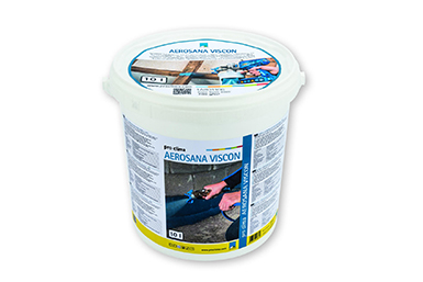 AEROSANA VISCONN es una pasta de dispersión acrílica en base de agua que se puede aplicar por rociado o como pintura. Una vez aplicada crea tras el tiempo de secado una película elástica sin fisuras que forma el plano de hermeticidad al aire y reguladora de vapor. La adhesión funciona en todos los materiales habituales en la construcción, en todas las láminas pro clima y en láminas de aluminio o papel.