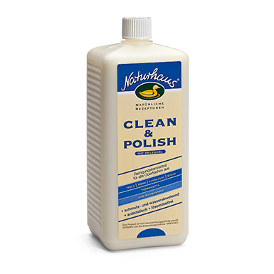 NATURHAUS Clean & Polish es un agente de limpieza y conservación de elevada acción, a base de agua, para superficies tratadas con aceite, cera o laca. NATURHAUS Clean & Polish limpia, regenera y conserva la superficie. En suelos, el producto también puede ser utilizado con máquinas de limpieza.